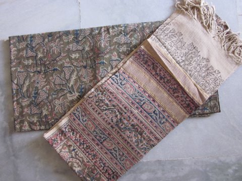 • HAND BLOCK KALAMKARI PRINTED FABRIC